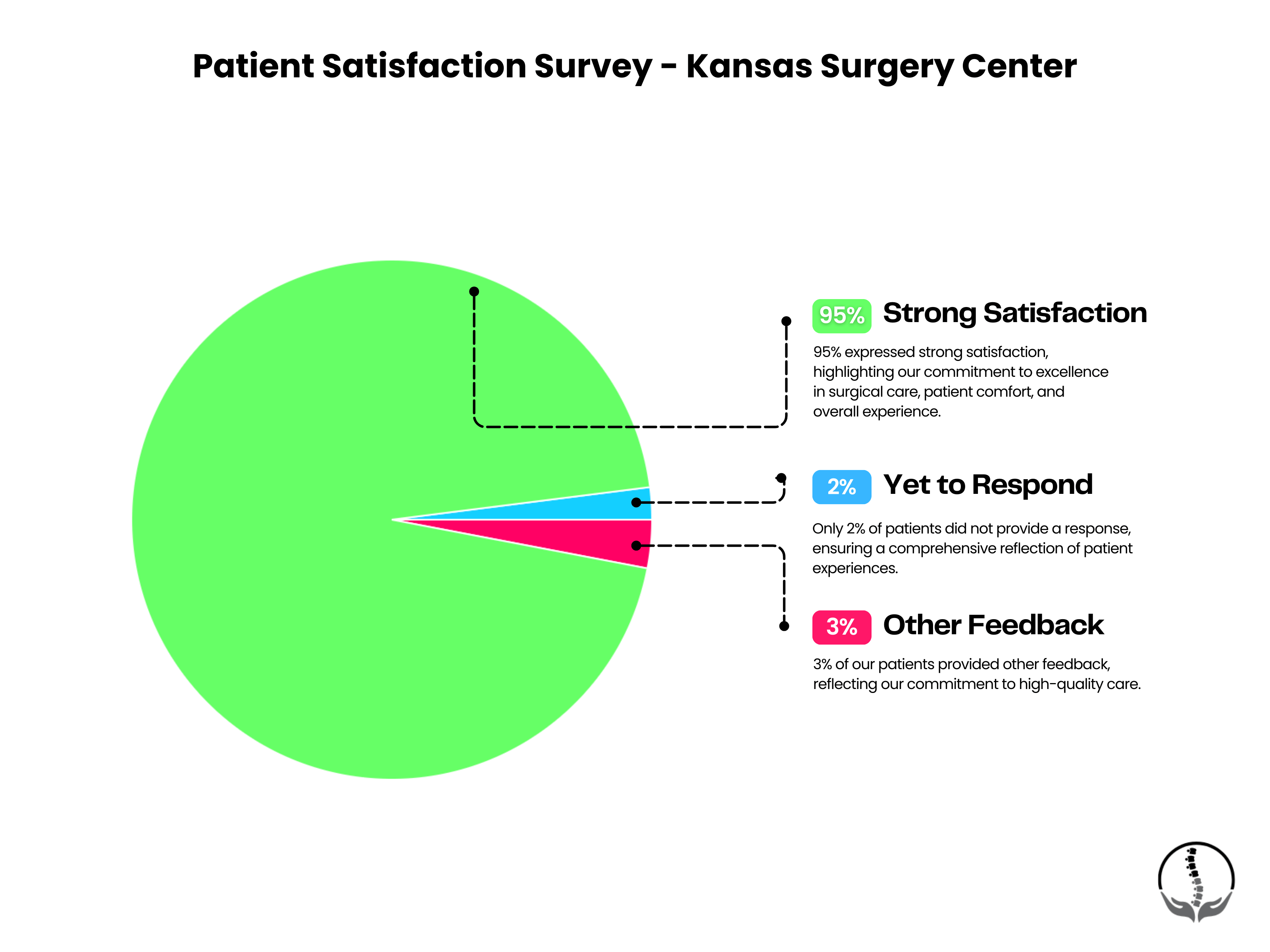At Kansas Surgery Center, we are dedicated to delivering exceptional care and a top-quality patient experience. In our latest survey, 98% of patients participated, demonstrating their trust in our services. Among them, 95% expressed strong satisfaction with their care and stated they would recommend our facility to other providers. Additionally, 94% of patients praised the cleanliness of our facility, emphasizing the importance of a safe and comfortable environment.